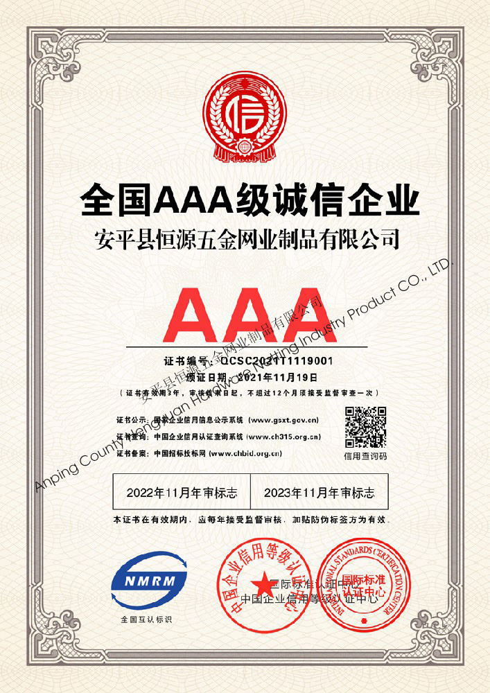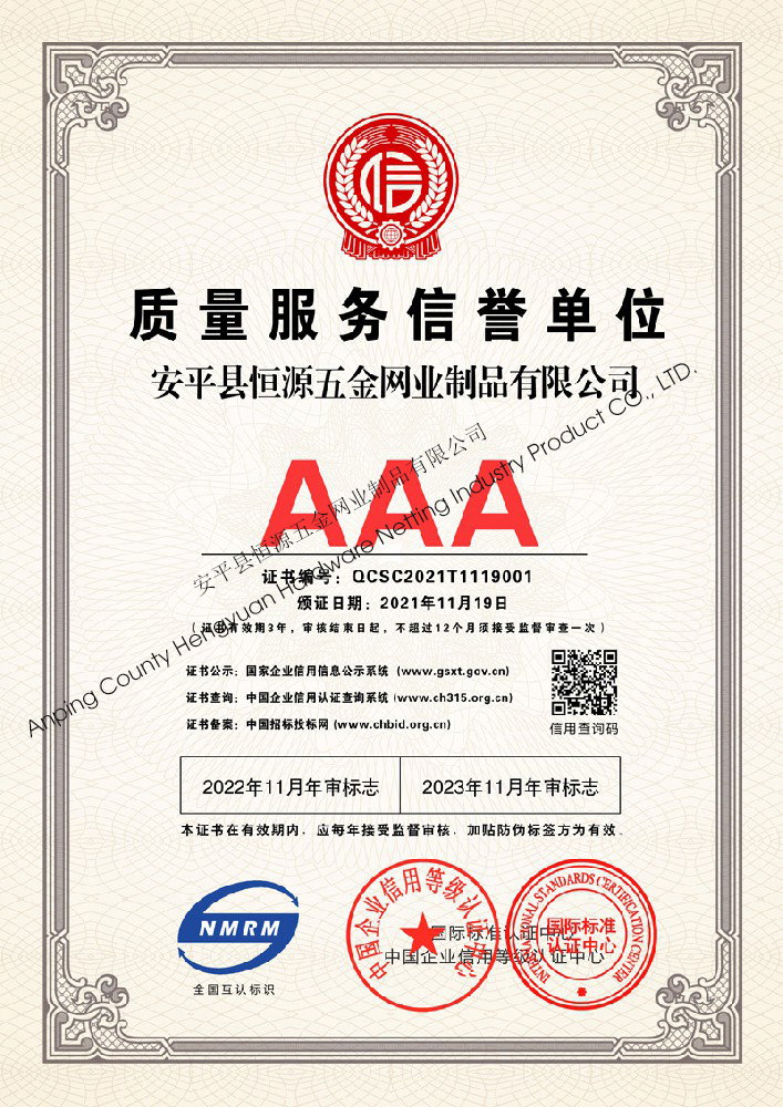 多年來,安平縣恒源五金網(wǎng)業(yè)制品有限公司堅(jiān)持“科技興企、質(zhì)量立業(yè)”的經(jīng)營(yíng)理念和“誠(chéng)心為本、客戶至上”的合作宗旨,優(yōu)化生產(chǎn)工藝,打造優(yōu)質(zhì)產(chǎn)品,提供完善的服務(wù),受到國(guó)內(nèi)外客戶的一致好評(píng),產(chǎn)品行銷全國(guó)各地,并出口美國(guó)、德國(guó)、韓國(guó)、日本、臺(tái)灣等國(guó)家和地區(qū)。